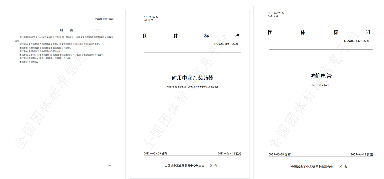 制定標準實施-《礦用中深孔裝藥器》與《防靜電管》